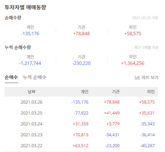 LG상사(001120)의 최근 3개월 기준 투자자별 매매동향을 보면 외국인은 매수를 하였으며 개인과 기관은 매도를 하였습니다.
