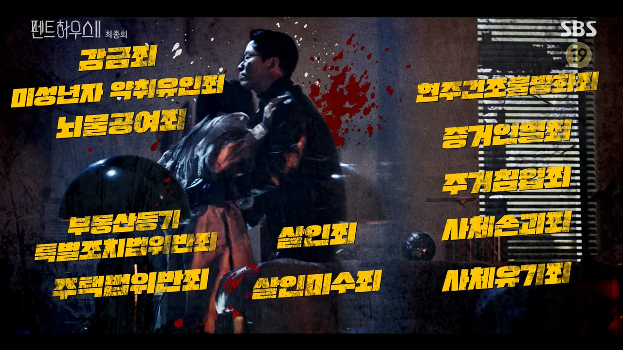 여기까지 준비한 펜트하우스2 드라마 13화 줄거리 정리 2부 민설아재판 주단태형량 강마리형량 이규진형량 고상아형량 죄와형량 죄명 징역기간이였습니다.