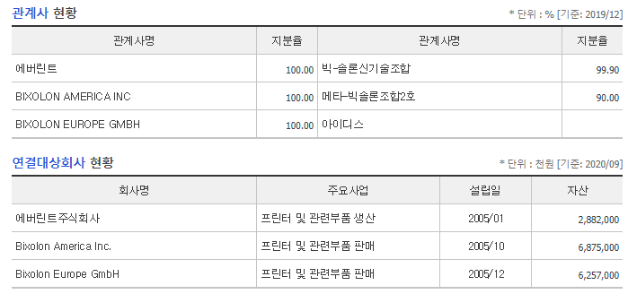 빅솔론(093190)의 관계사와 연결대상회사 아래와 같습니다.