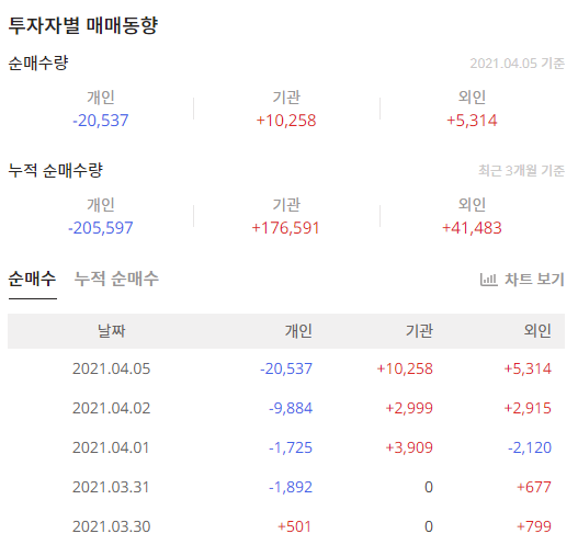 빅솔론(093190)의 최근 3개월 투자자별 매매동향을 확인해보면 개인은 매도를 했으며 기관과 외국인은 매수를 했습니다.
