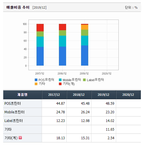 다른곳에서 재공해주고 있는 매출관련 구성이며 POS프린터가 매출의 대략 반을 차지하고 있는 것을 볼 수 있습니다.