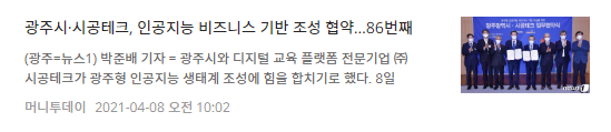 광주시, 시공케트, 인공지능 비지니스 기반 조성 협약 86번째
