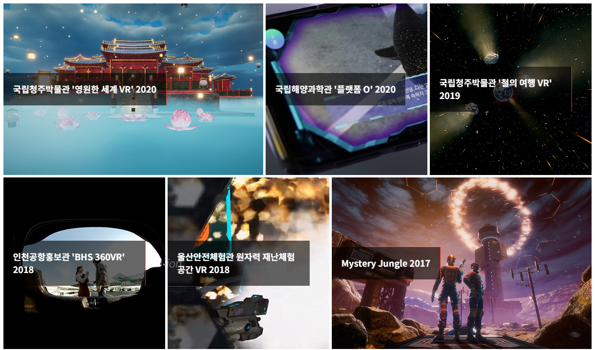 IMMERSIVE FILMS, SIMULATOR, MEDIA ARTS, VR&AR, SHOWCASE, STORAGE로 구분이 되어 있습니다.