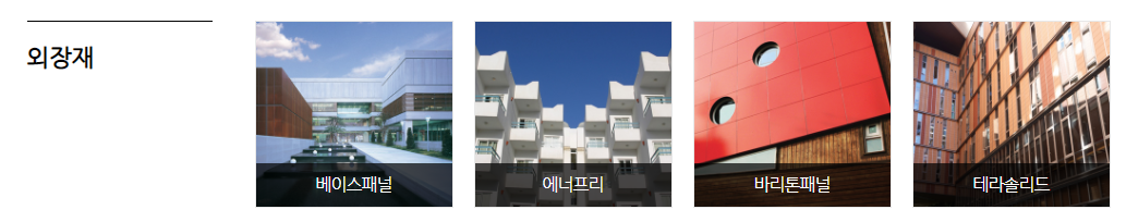 외장재는 베이스패널, 에너프리, 바리톤패널, 테라솔리드로 분류가 되어 있습니다.