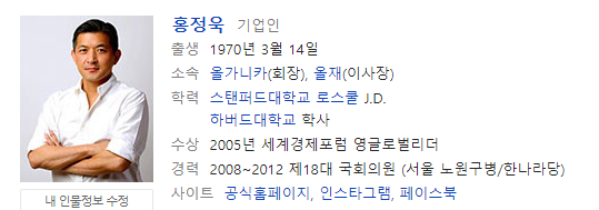 그리고 홍정욱 전 의원은 벽산의 김성식 대표이사와 하버드대학교 동문이라고 합니다.
