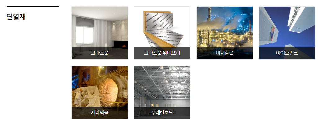 전체적인 제품군을 보면 위에 분류가 되어 있듯 건축자재를 생산하는 업체입니다.