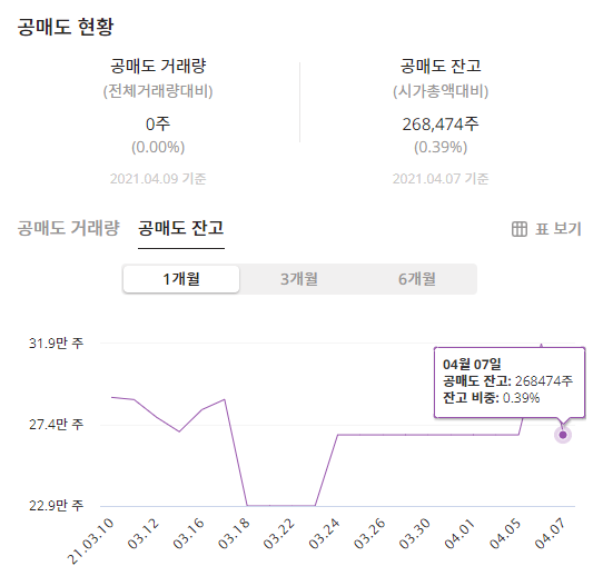 벽산007210의 공매도 현황은 268,474주로 잔고비중은 0.39%입니다.