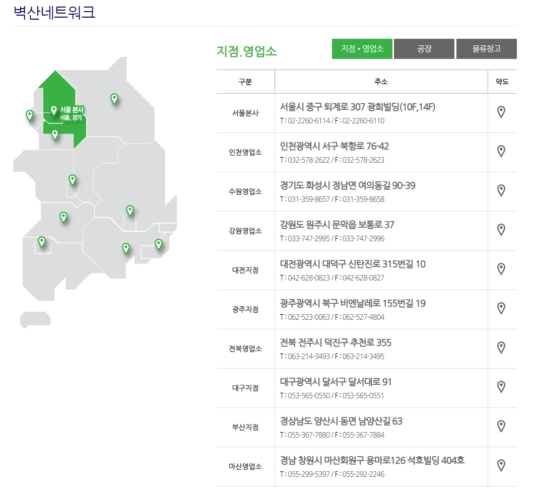 그리고 전국 지점 및 영업소가 있는것을 확인 할 수 있습니다.