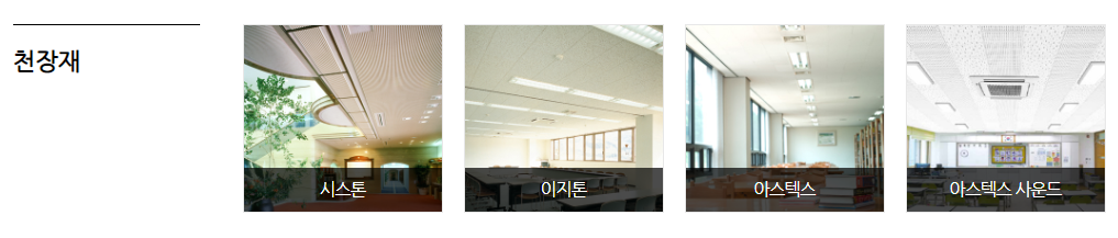천장재는 시스톤,이지톤,아스텍스,아스텍스사운드로 분류가 되어 있습니다.