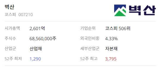 이번 시간은 벽산007210종목에 대해서 알아보려고 합니다.
