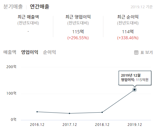 SBI인베스트먼트019550의 연간매출을 보면 2019년부터 상승하고 있습니다