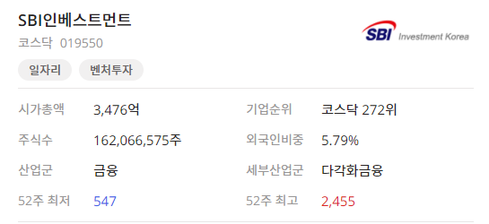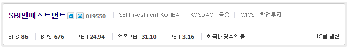 이번 시간은 SBI인베스트먼트019550종목분석을 해보려고 합니다.
