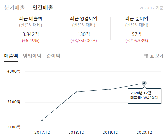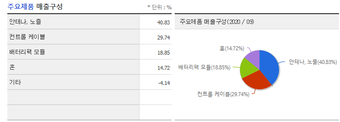 다른 사이트에서 나와있는 주요제품 매출구성입니다.