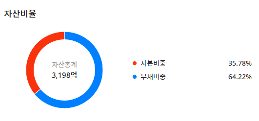 인팩023810의 자산을 확인을 하면 자산총계는 3,198억이며 자본비중:35.78%, 부채비중:64.22%이며