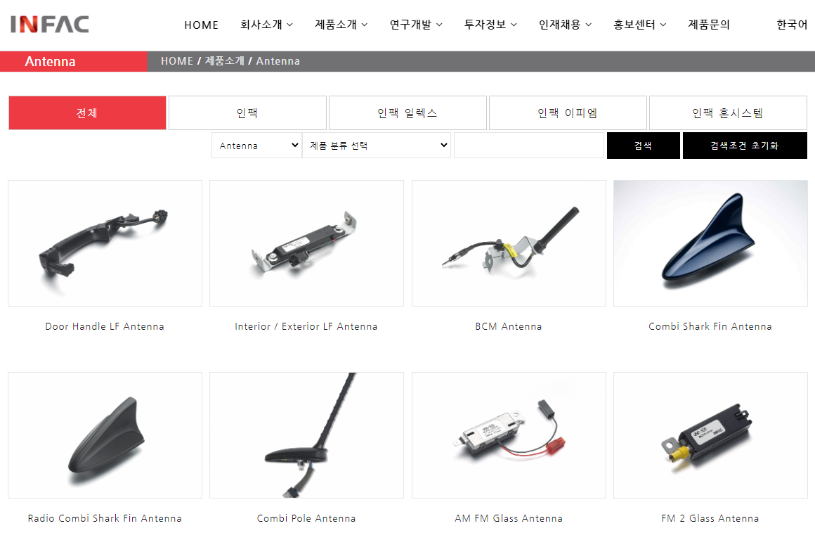인팩을 검색해 보니 자동차용 케이블, 솔레노이드 밸브, 스위치, 안테나 등 취급이라고 나와 있습니다.