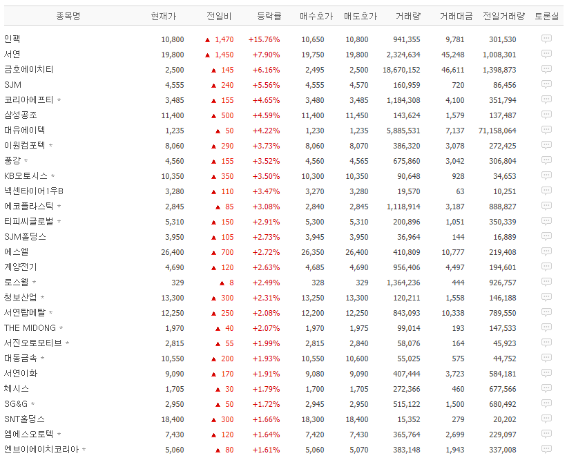 인팩023810 WICS:자동차부품 업종으로 자동차부품의 업종은 146개가 있으며 2021년 4월 16일 상승 1등이 인팩입니다.