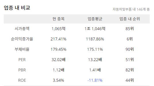 인팩023810의 세부산업군:자동차부품으로 업종 내 시가총액 85위(933억)이며 ROE:44위, PBR:82위, PER:51위 입니다.