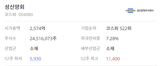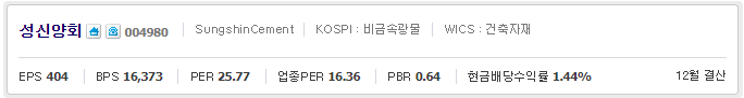 성신양회004980기본적인 분류와 정보를 확인해 보겠습니다.