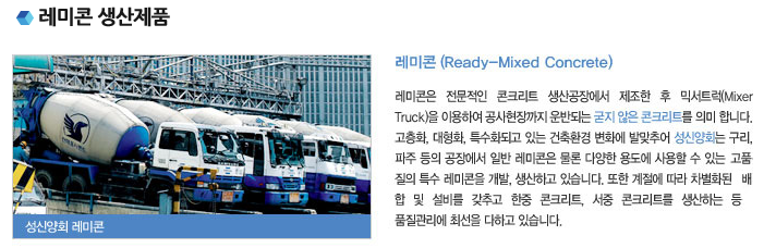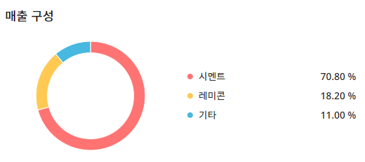 매출구성은 시멘트:70.80%, 레미콘:18.20%, 기타:11.00%로 구성되어 있습니다.