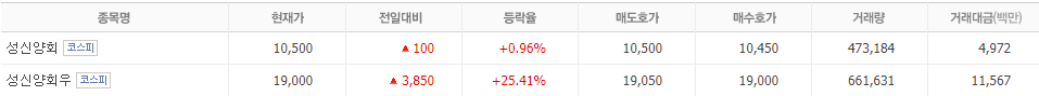 성신양회004980는 우선주도 있으며 2021년 4월 19일 우선주는 상한가 근처까지 갔습니다.
