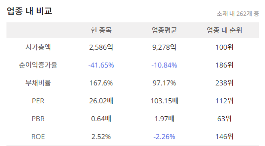 성신양회004980의 세부산업군:소재 내 262개 중 업종 내 시가총액 순위 100위(2,586억)이며 ROE:146위, PBR:63위, PER:112위 입니다.