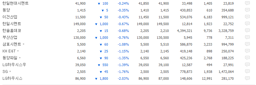 성신양회004980의 업종 건축자재의 업종은 총 44개 종목이 있으며 2021년 4월 19일 기준 성신양회우가 상승1위입니다.