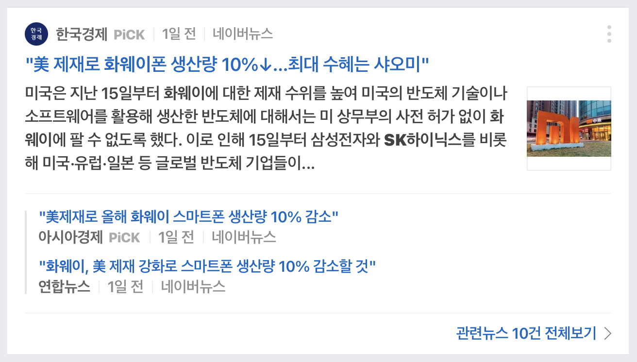 화웨이로 인해서 영향이 받는 종목을 정리 했습니다.