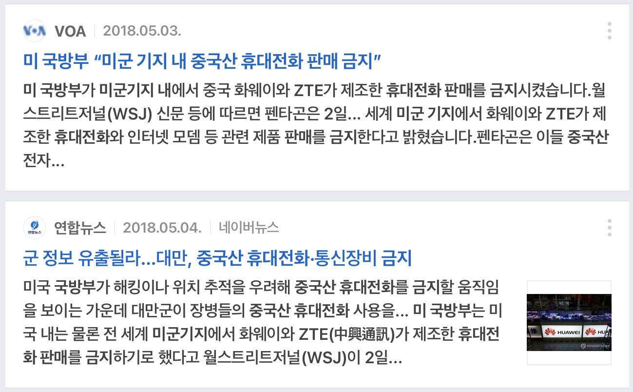 3.미 국방부 미군 기지 내 중국산 휴대전화 판매 금지