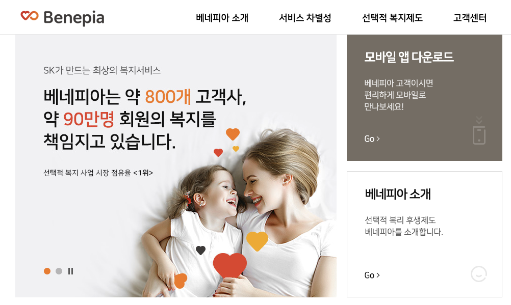 -SK가 만드는 최상의 복지서비스 베네피아는 약 800개 고객사와 약 90만명 회원의 복지를 책임지고 있다고 합니다.
