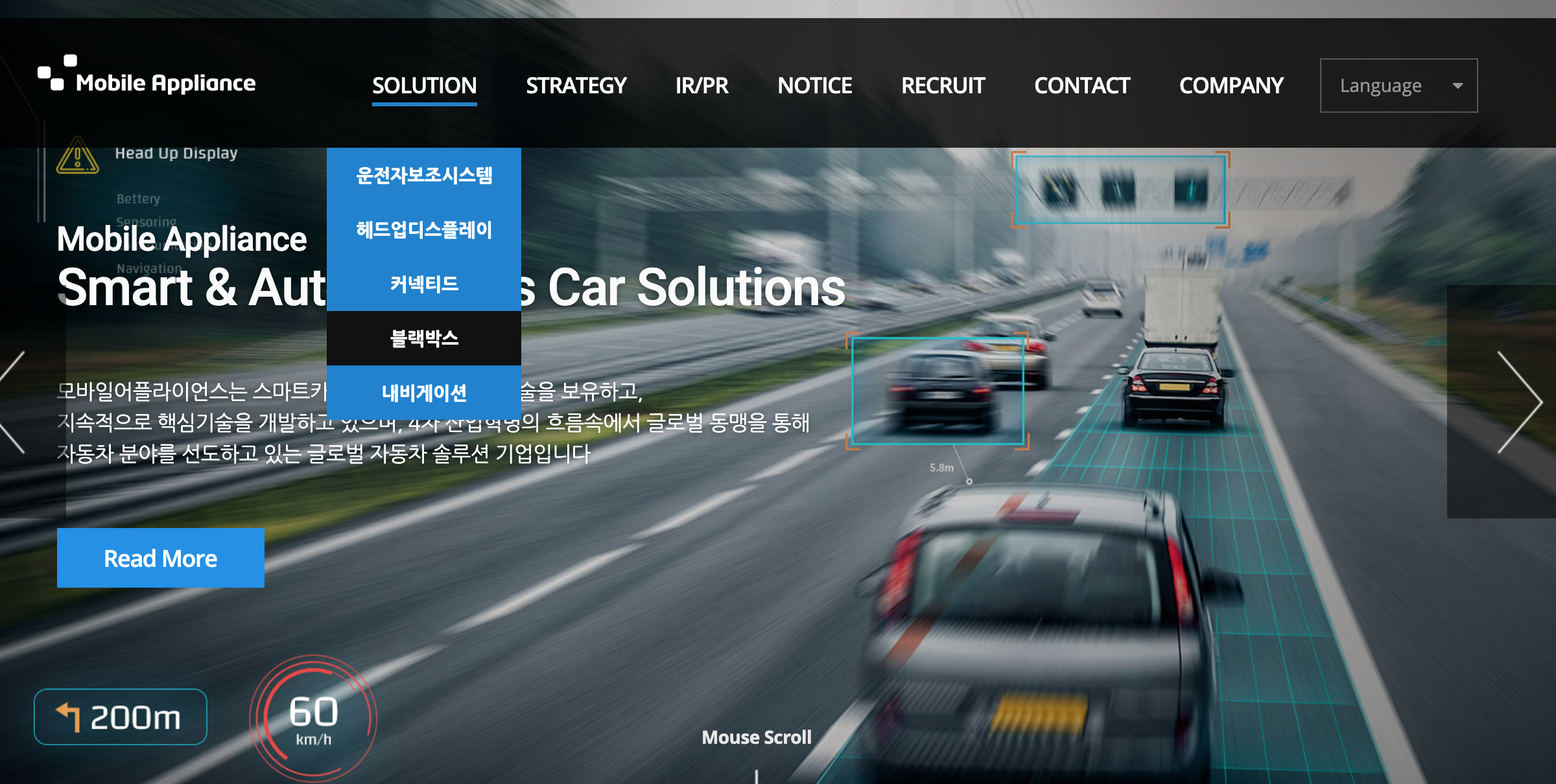 모바일어플라이언스는 자율주행으로 알려져 있고 2004년 4월 19일 설립된 스마트자율주행 솔루션 전문기업입니다