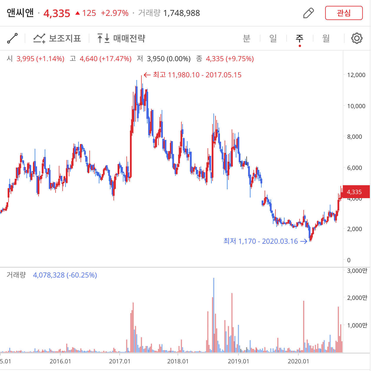 앤씨앤(092600)은 1997년 5월에 설립되어, 영상보안시장향 멀티미디어 반도체 제품의 제조 및 판매를 주 사업으로 영위하며 이 밖에 자동차용 운행영상기록장치(블랙박스) 사업을 영위하며 019년 Automotive 사업부분을 물적분할하여 넥스트칩 설립 및 자회사 앤커넥스 흡수합병 및 분할 존속회사 앤씨앤을 출범했습니다.