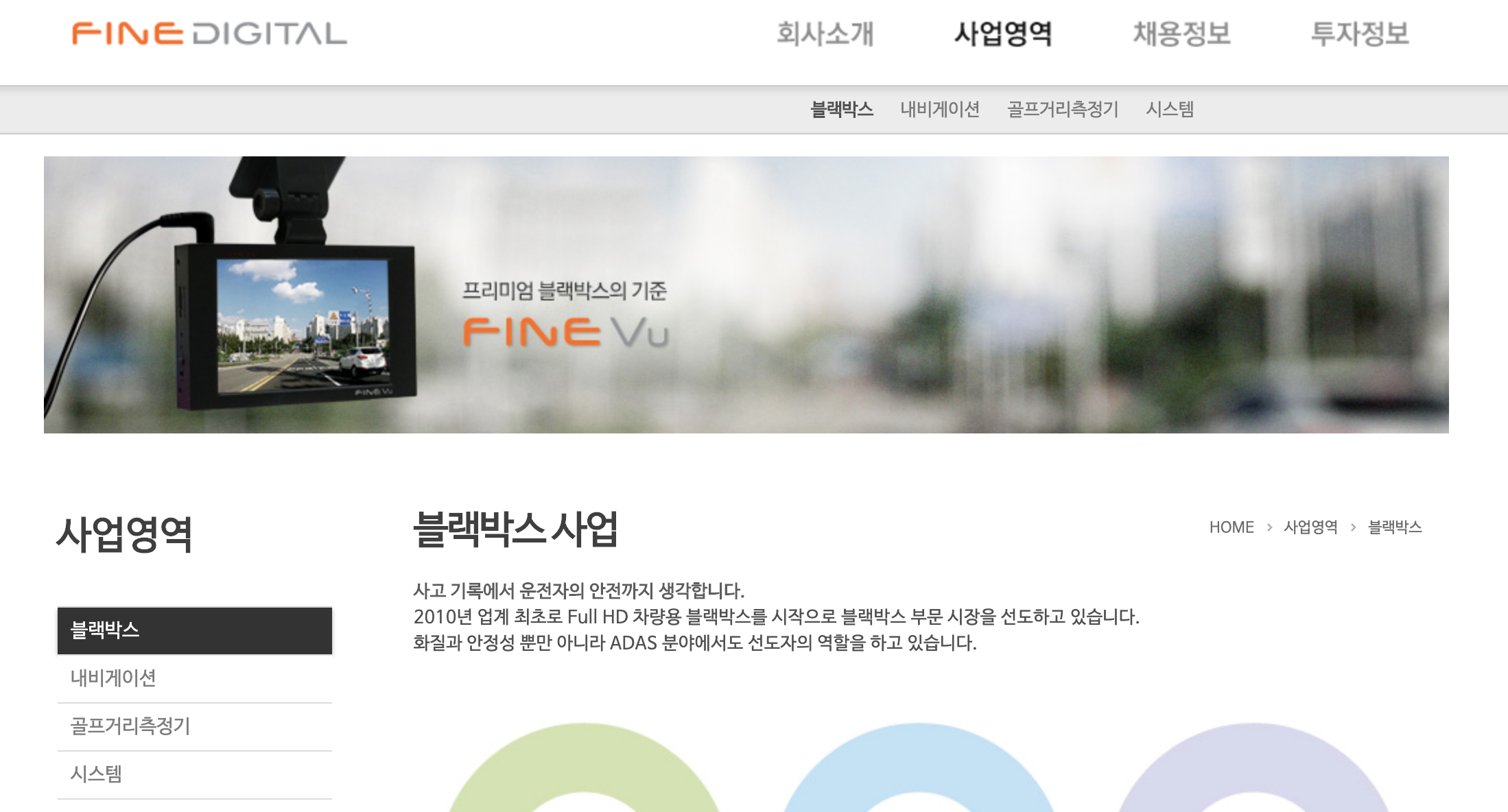주요 사업으로 차량용 블랙박스,내비게이션 장치 및 골프거리측정기를 개발,판매하고 있으며, 주요 판매처는 온라인쇼핑몰, 오픈마켓, 대리점 등이며 내비게이션 브랜드는 '파인드라이브(Fine Drive)'로, 자회사인 맵퍼스를 통해 전자지도 '아틀란'을 안정적으로 공급받고 있습니다.