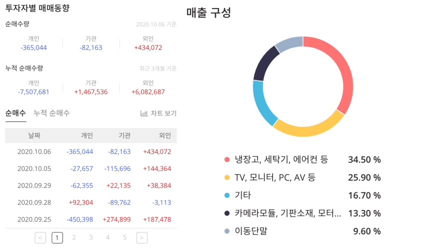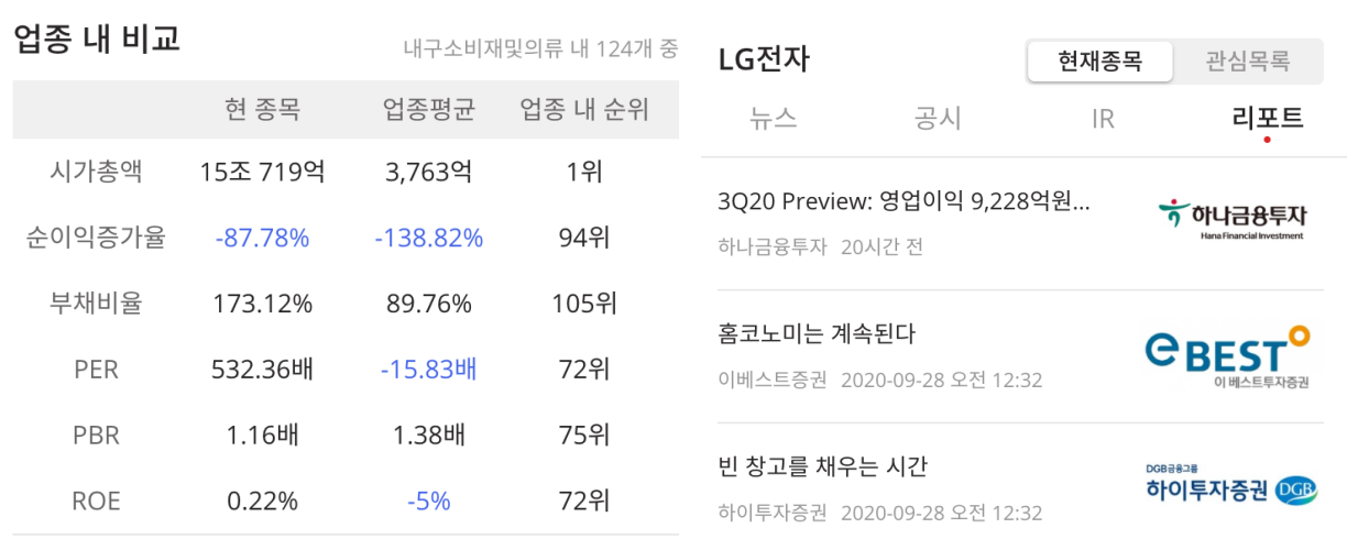 리포트를 잠시 보자면 영업이익 관련 산업관련 리포트가 있으며 영업이익관련은 3분기 실적이 잘나왔다는 산업관련 내용과 COVID19로 집에서 생활을 많이 하기 때문에 가전부분에 매출이 올라가고 있으며 특히 해외부분에 매출이 많이 올라갈것이라는 예측입니다. 산업관련은 LG전자만 해당이 되는 부분이 아니기 때문에 참조하시면 됩니다.