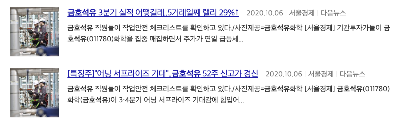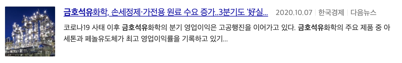 최근에 나온 금호석유화학 뉴스 기사 제목입니다.