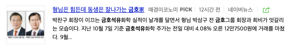 형님은 힘든데 동생은 잘나가는 금호가 라는 기사가 있습니다. 형님이 이끄는 기업은??