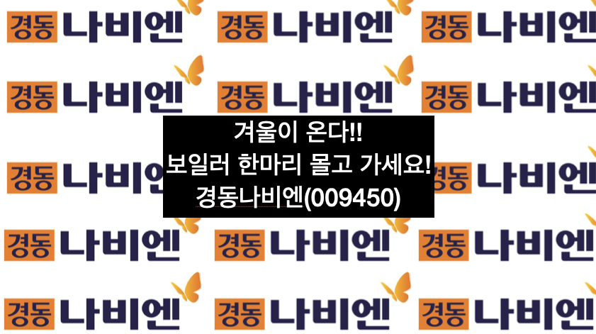 다시 돌아와서 보일러 관련 종목은 바로 경동나비엔 입니다!! 린나이 생각하신분이 있겠지만 린나이는 일본기업이며 귀뚜라미는 비상장입니다. 그래서 보일러 관련 종목을 경동나비엔으로 결정했습니다.