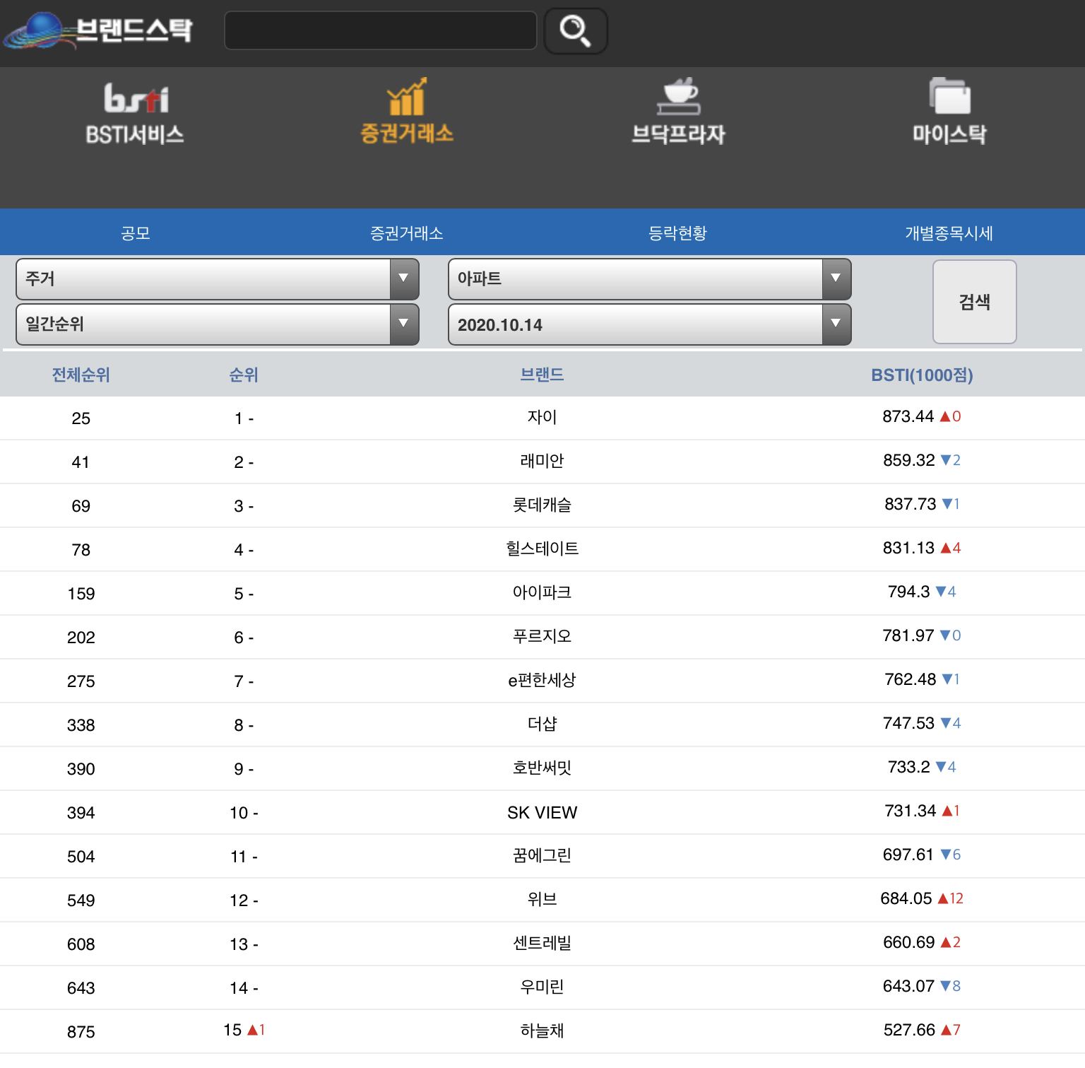 아파트 부문 브랜드스탁 지수(BSTI)란