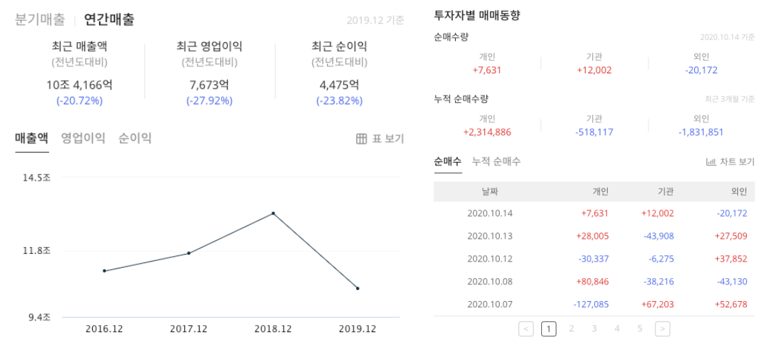 투자자별 매매동향을 보면 누적 순매수량은 개인이 높습니다.