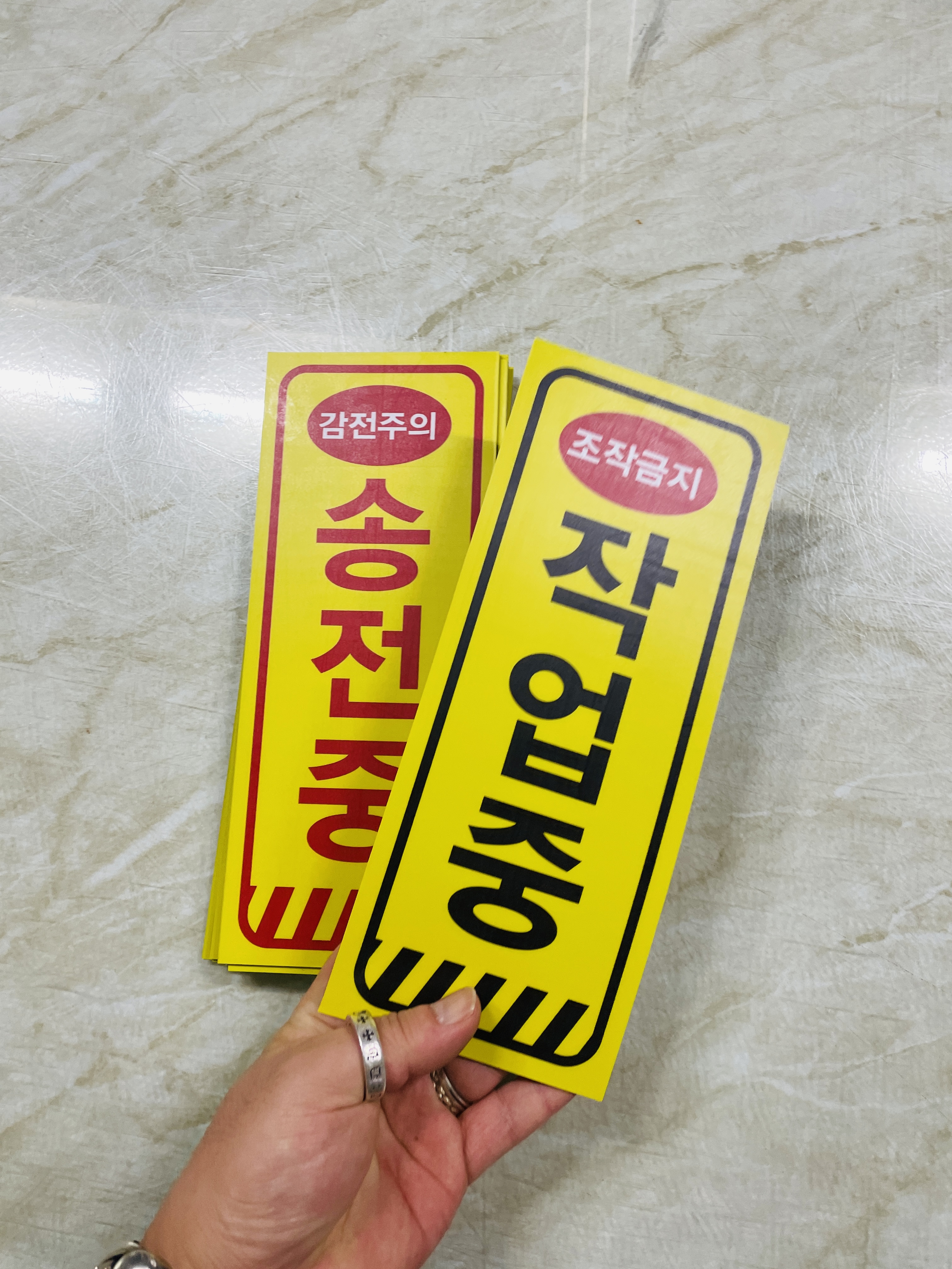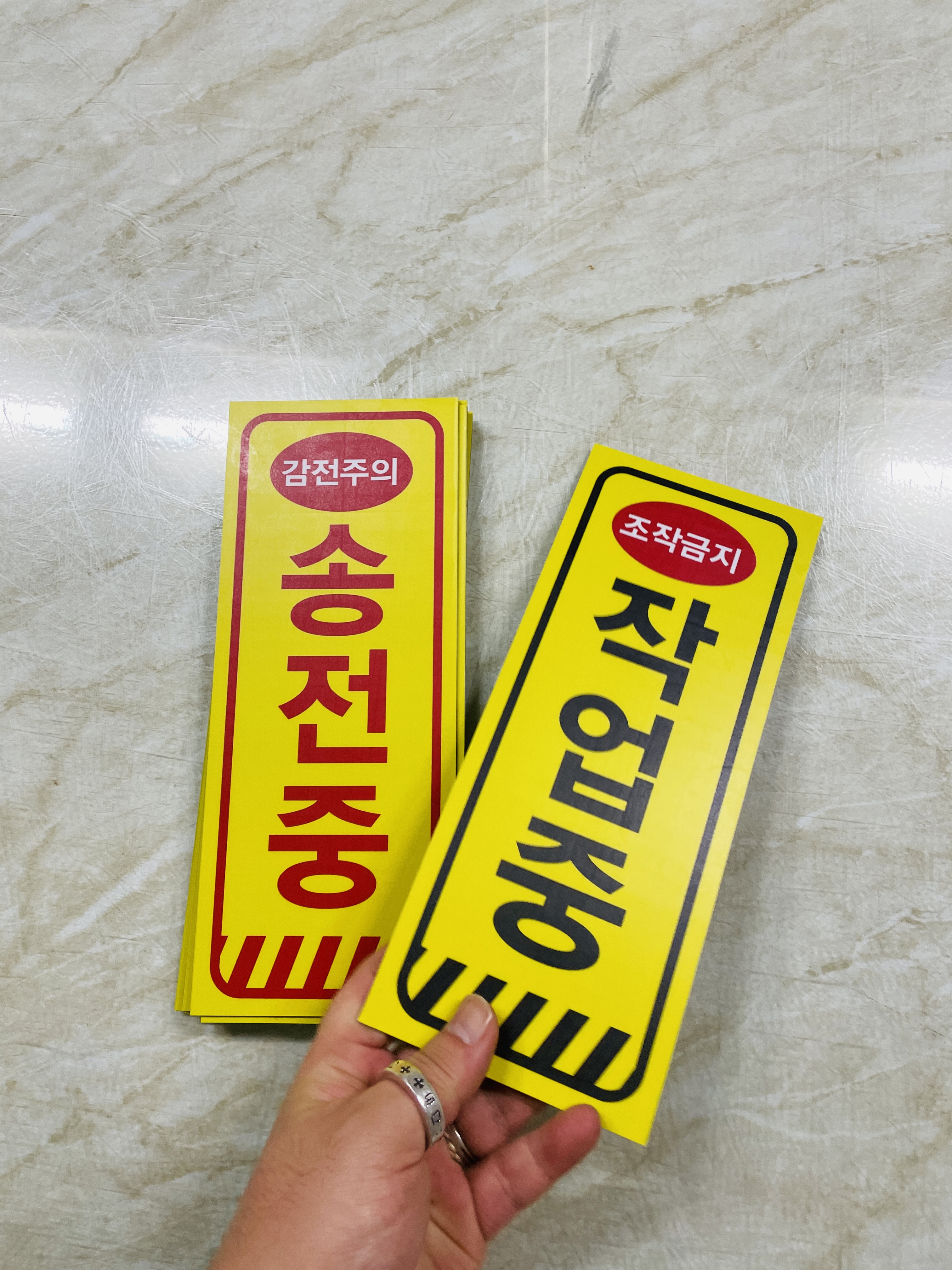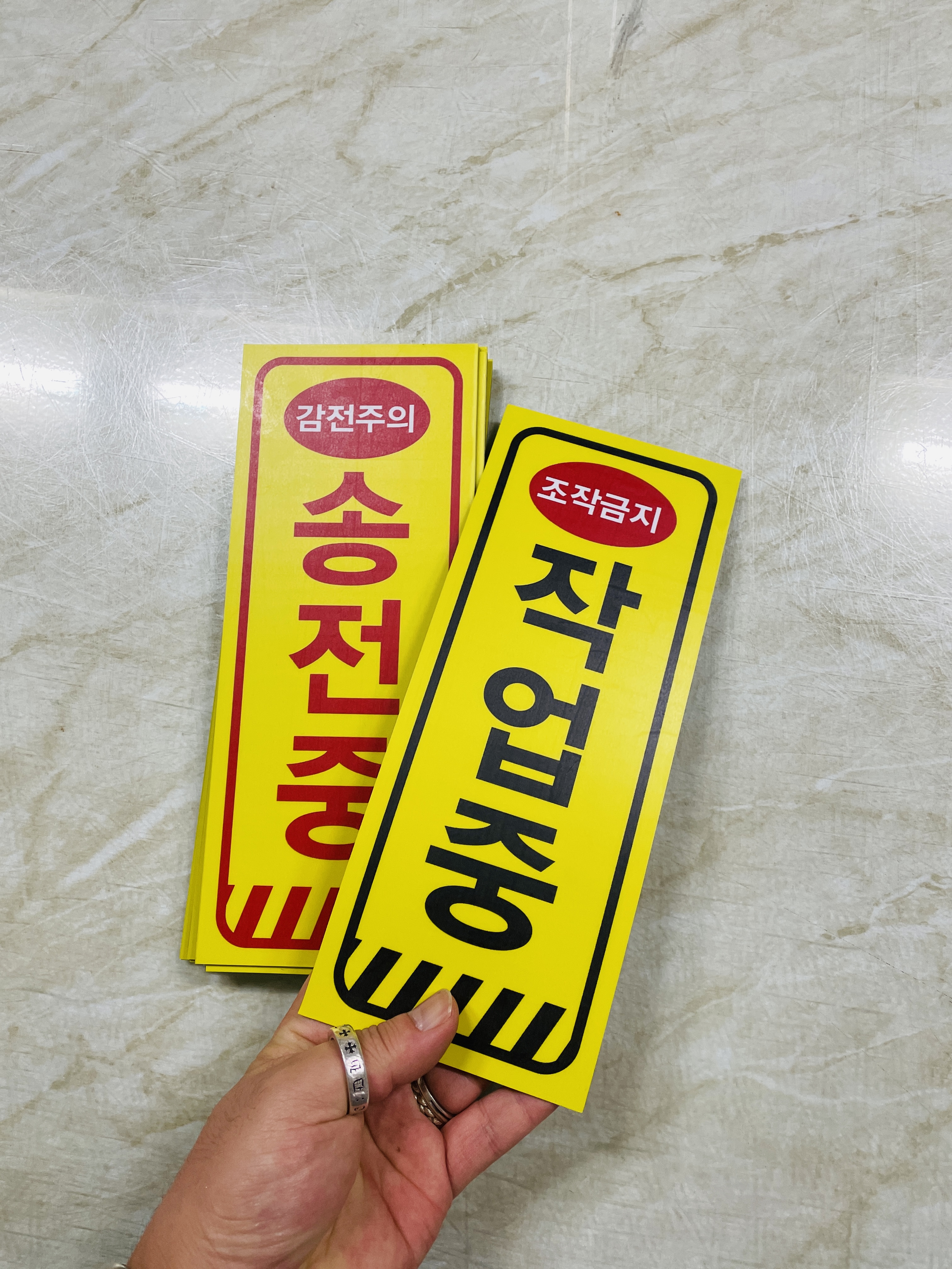 송전중 작업중 양면 자석스티커상품 산업안전보건표지