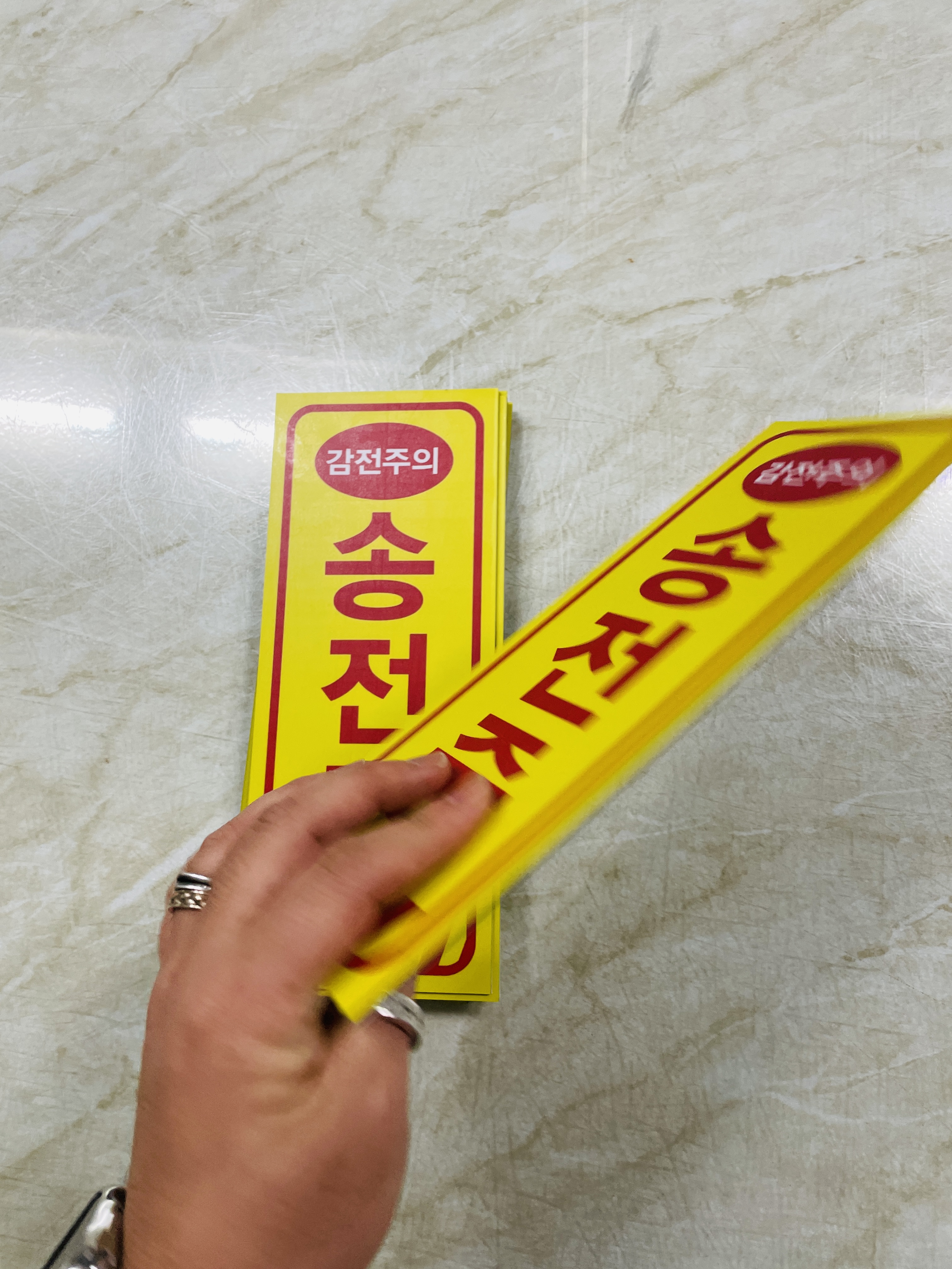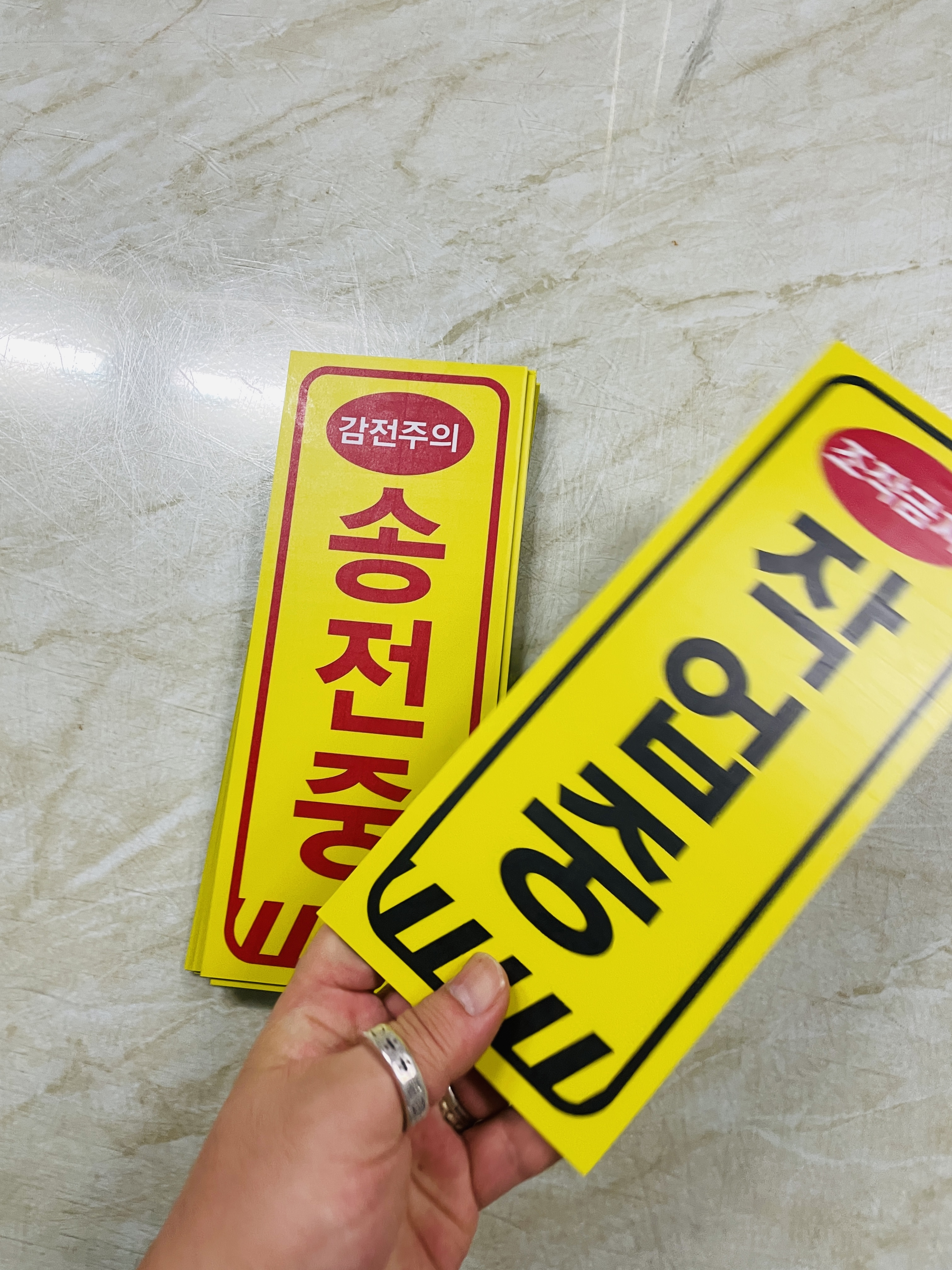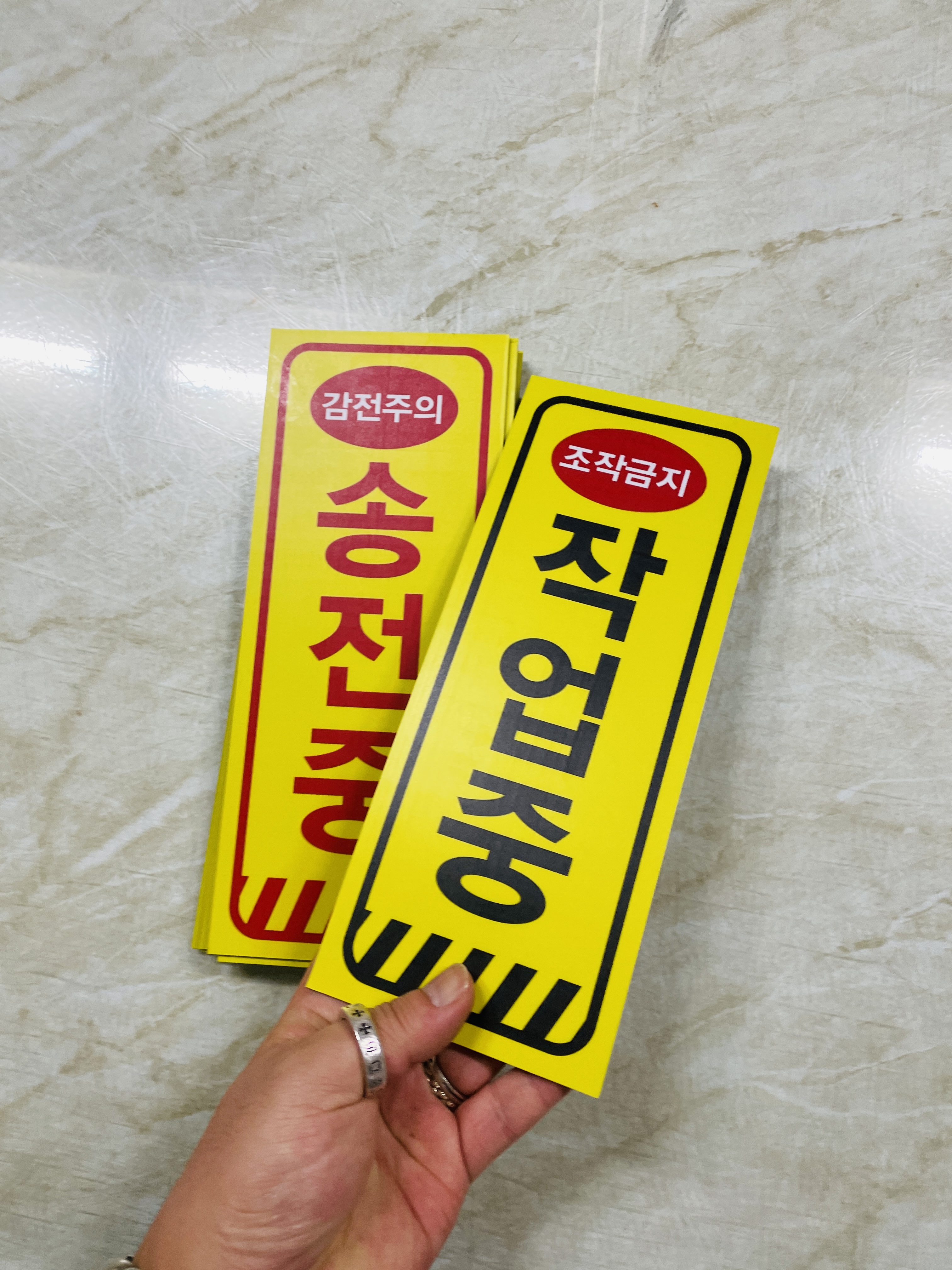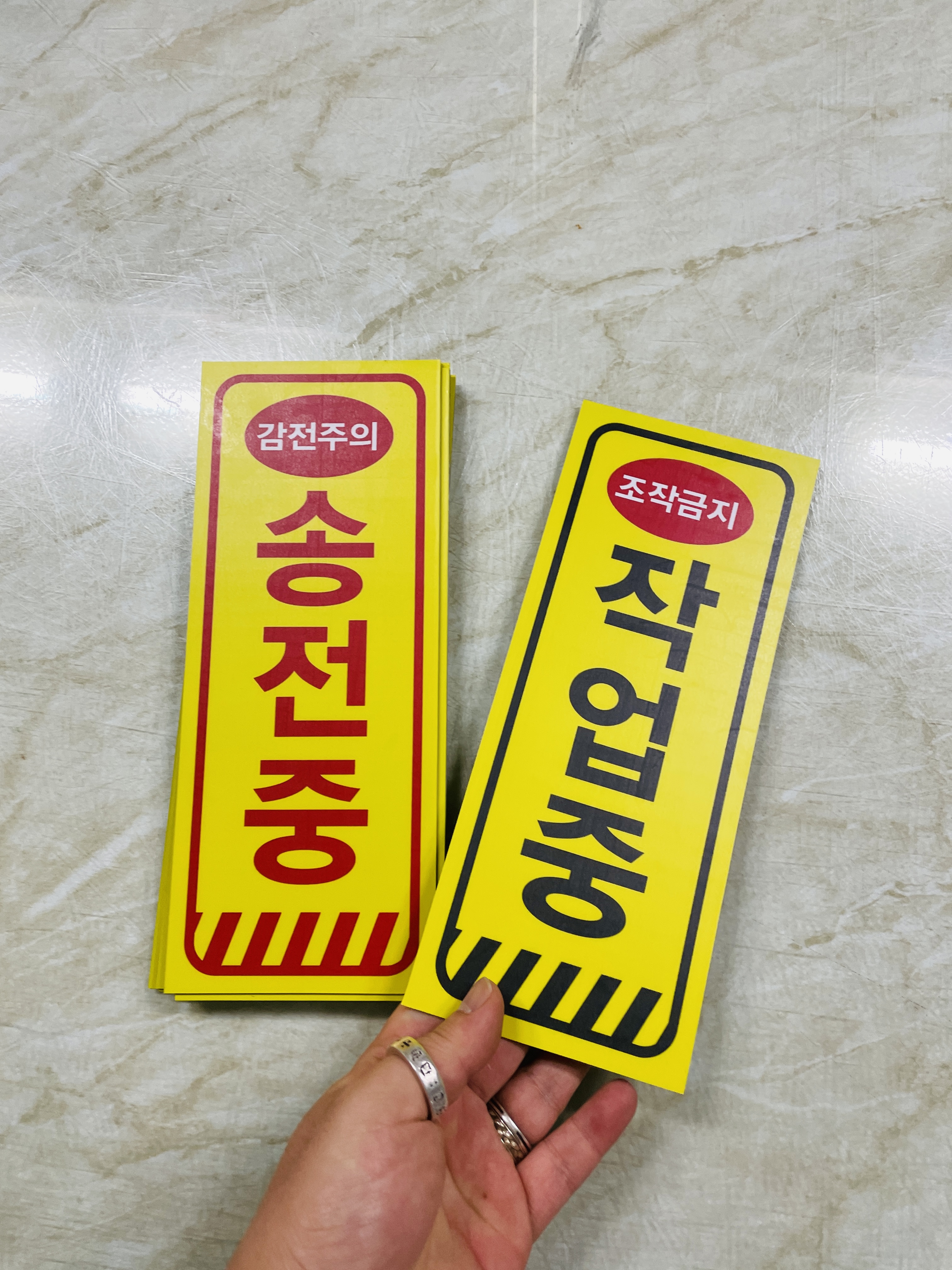 송전중 작업중 양면 자석스티커상품 산업안전보건표지