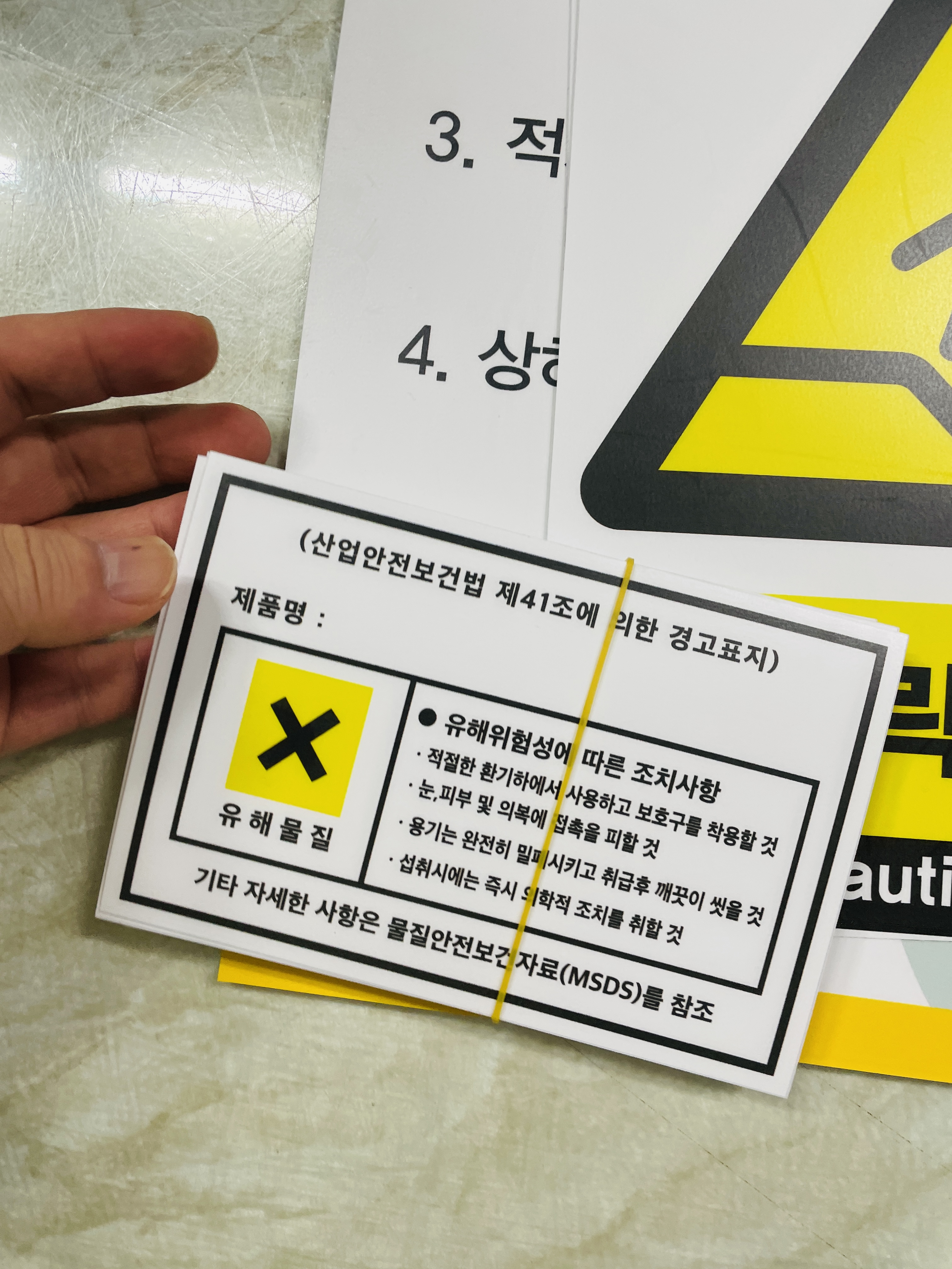 산업안전보건법 제41조에 경고표지 유해물질 물질안전보건자료 MSDS 표시 유해물질 유해위험성