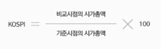 현재 코스피지수는 시가총액식 주가지수로 1980년 1월 4일 시가총액을 기준시점으로 현재의 지수를 산출하고 있습니다.