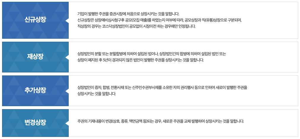 상장의 종류 4가지 (신규상장, 재상장, 추가상장, 변경상장)