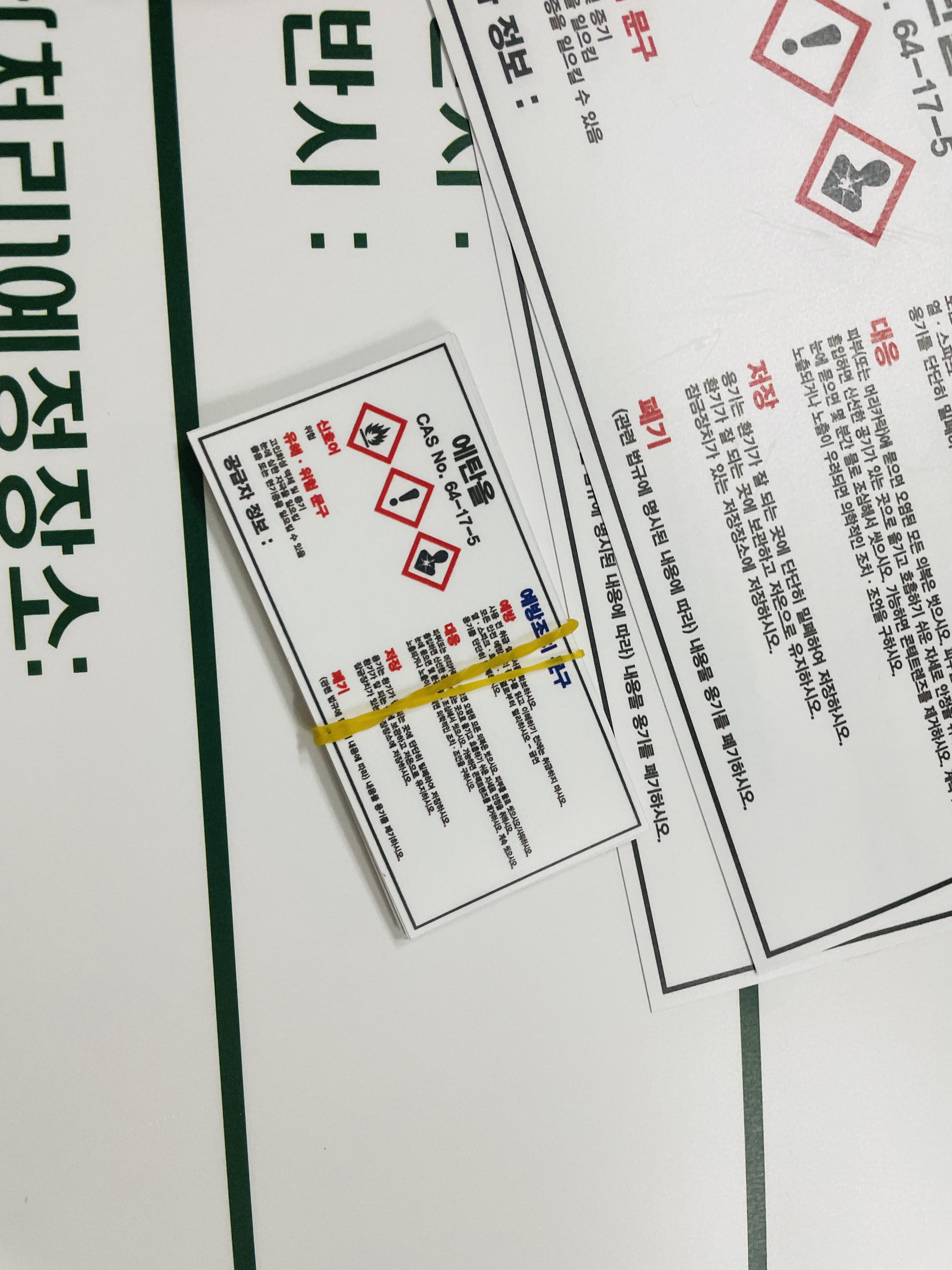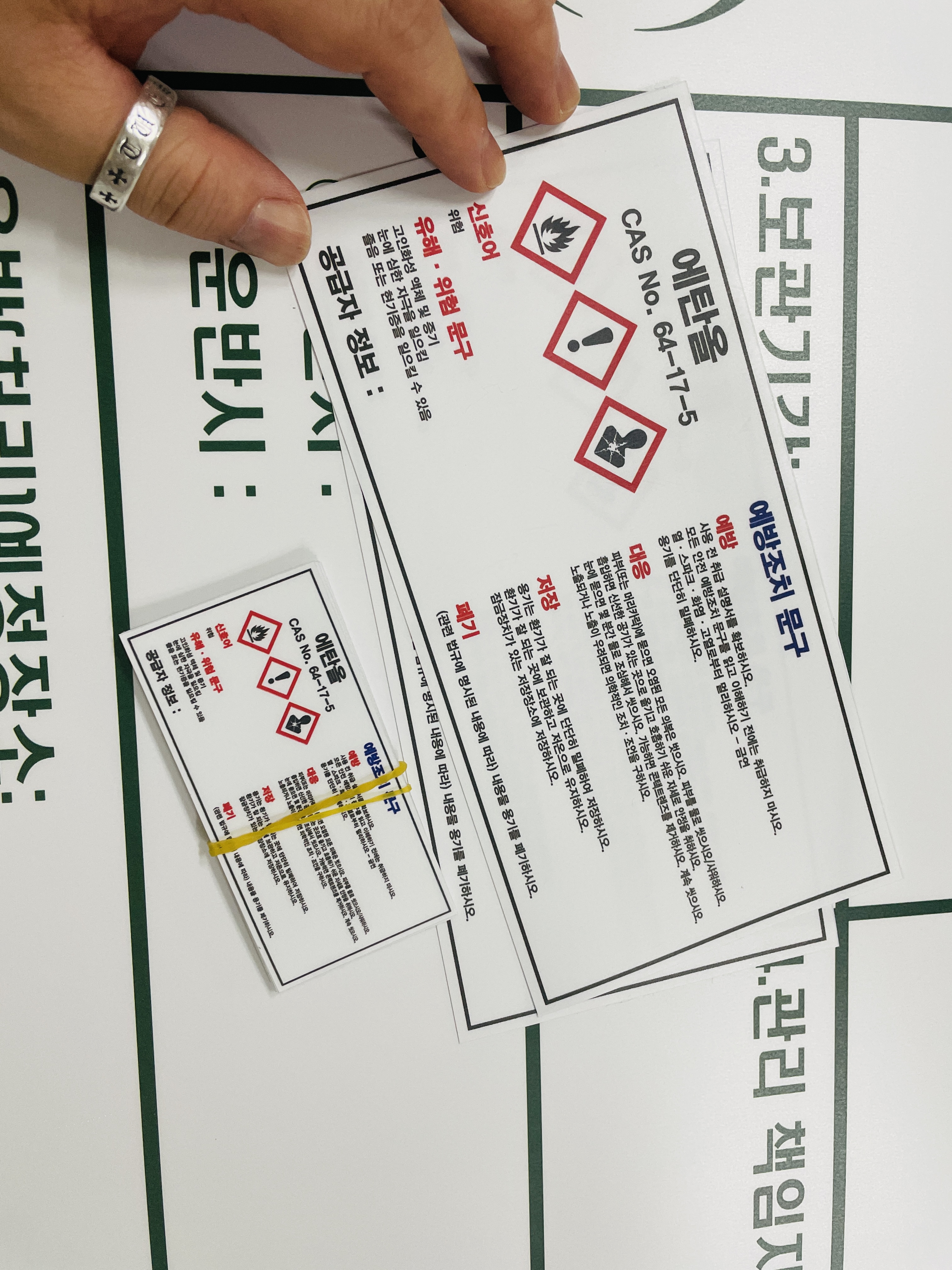 MSDS 에탄올 64-17-5 소량용기 스티커 표지판 자석