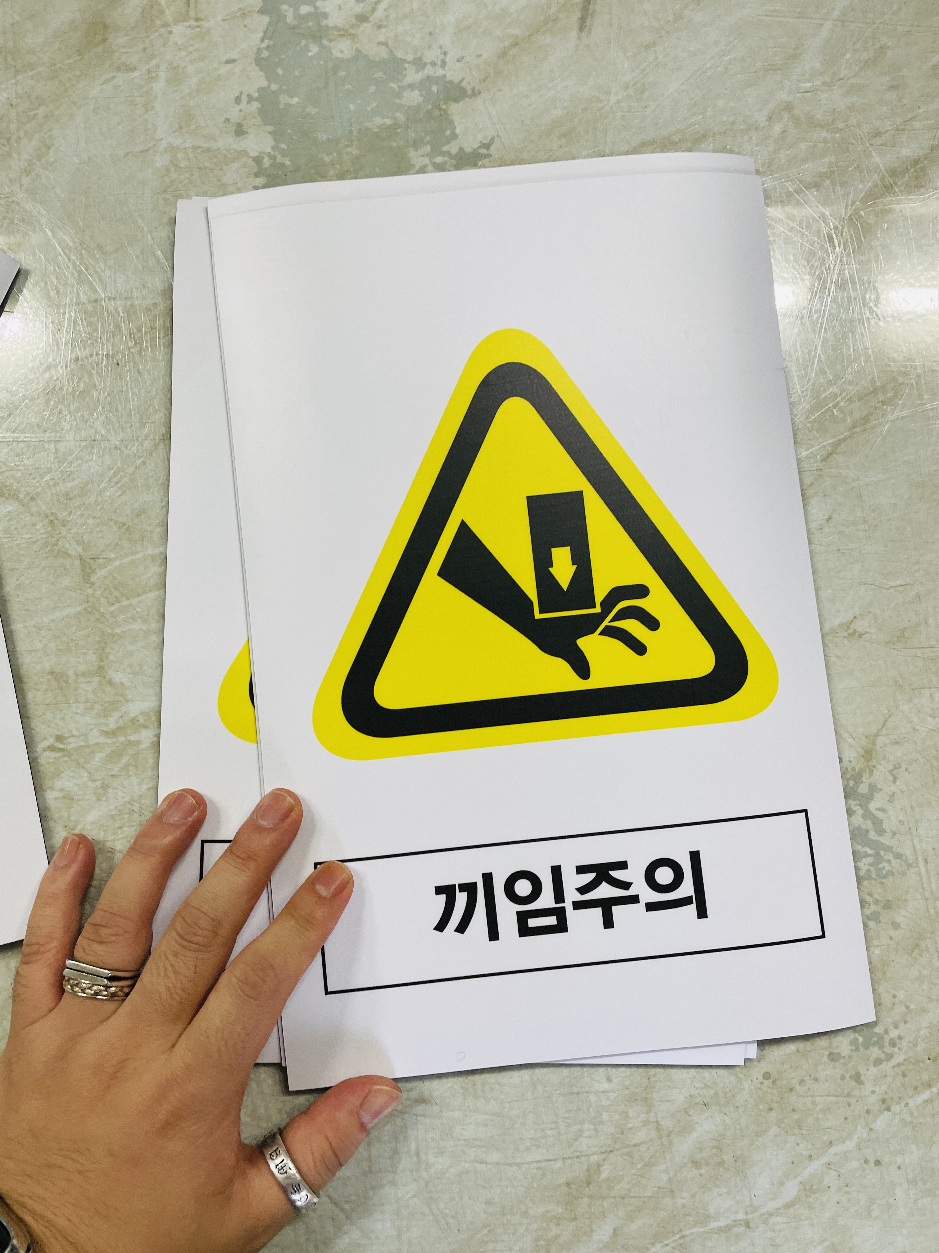 끼임주의 35 스티커 표지판 자석 산업 안전