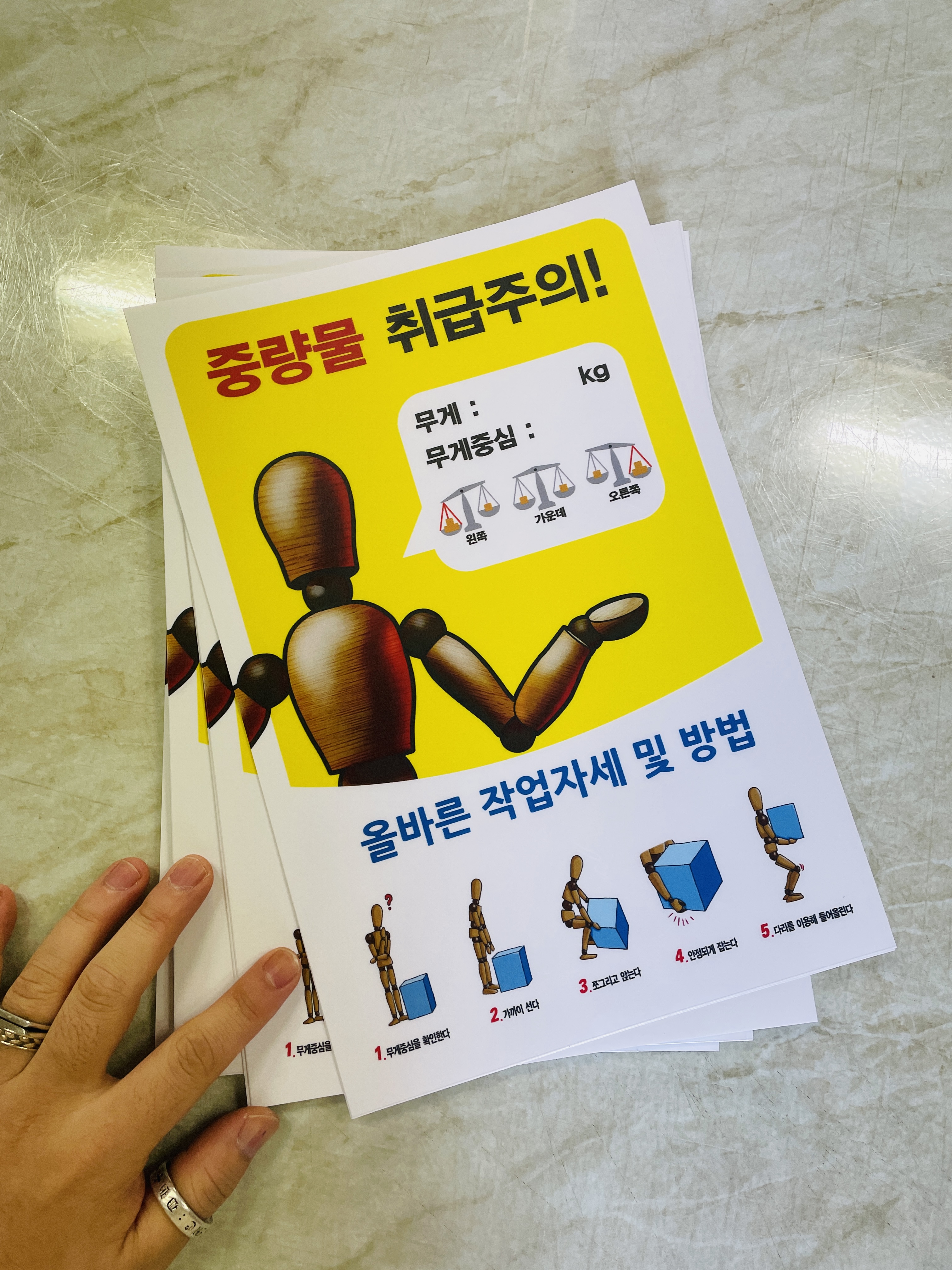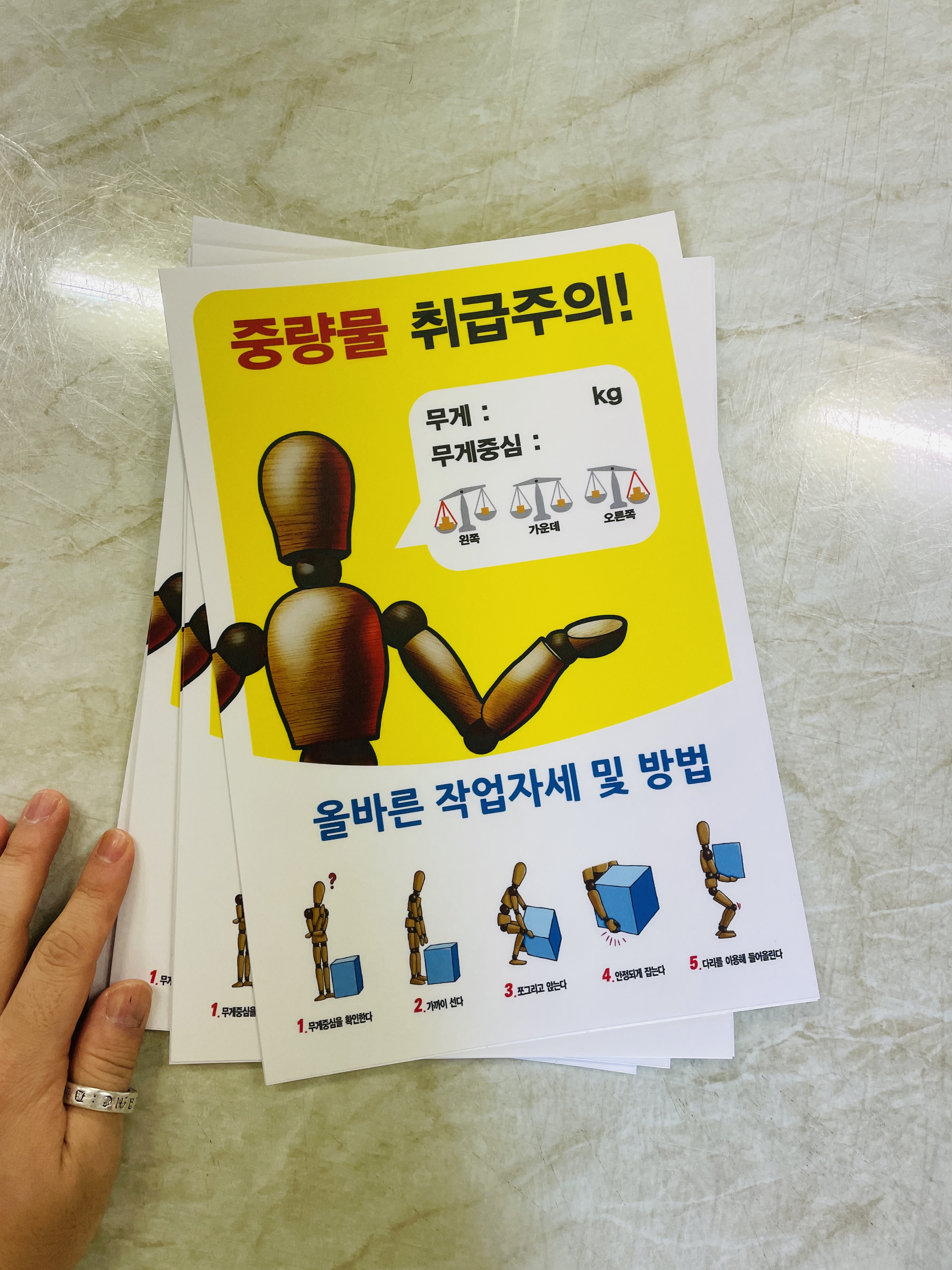 중량물 취급주의 1 스티커 표지판 자석 산업 안전 산업안전보건표지