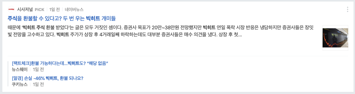 그리고 빅히트주식환불이라는 연관검색어도 있습니다만 주식은 환불이 불가합니다.
