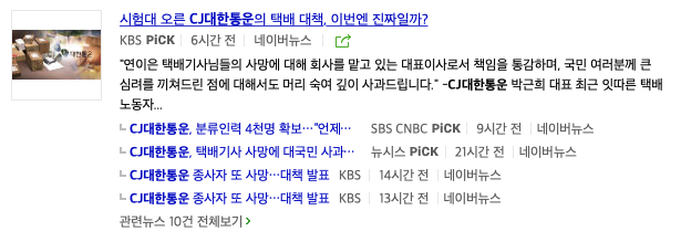 오늘 포스팅은 CJ대한통운에 대해서 알아보려고 합니다. 이유는 택배기사 사망 사과 "4천명 투입해 근무시간 단축"라는 기사제목을 보고 작성하게 되었습니다. 지속적으로 분류지원인력이 없어서 추선전에 파업소식을 들은바가 있습니다.