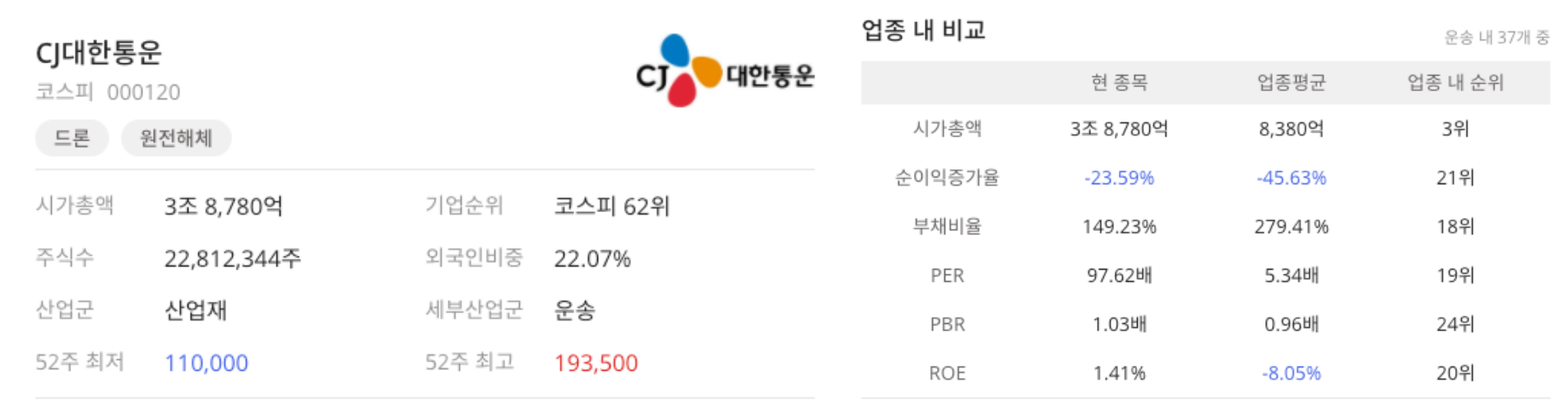 먼저 CJ대한통운에 대해서 알아보겠습니다.