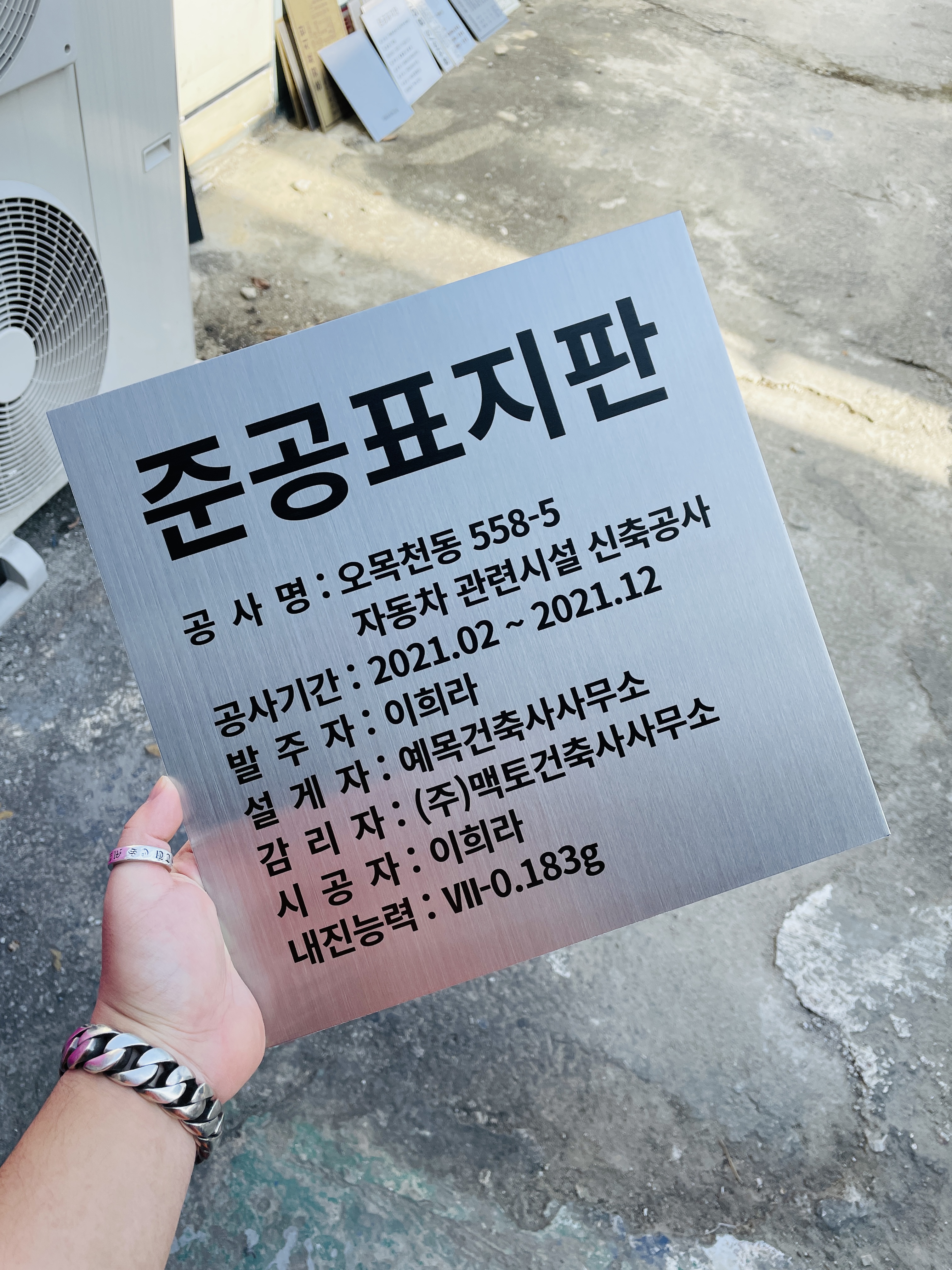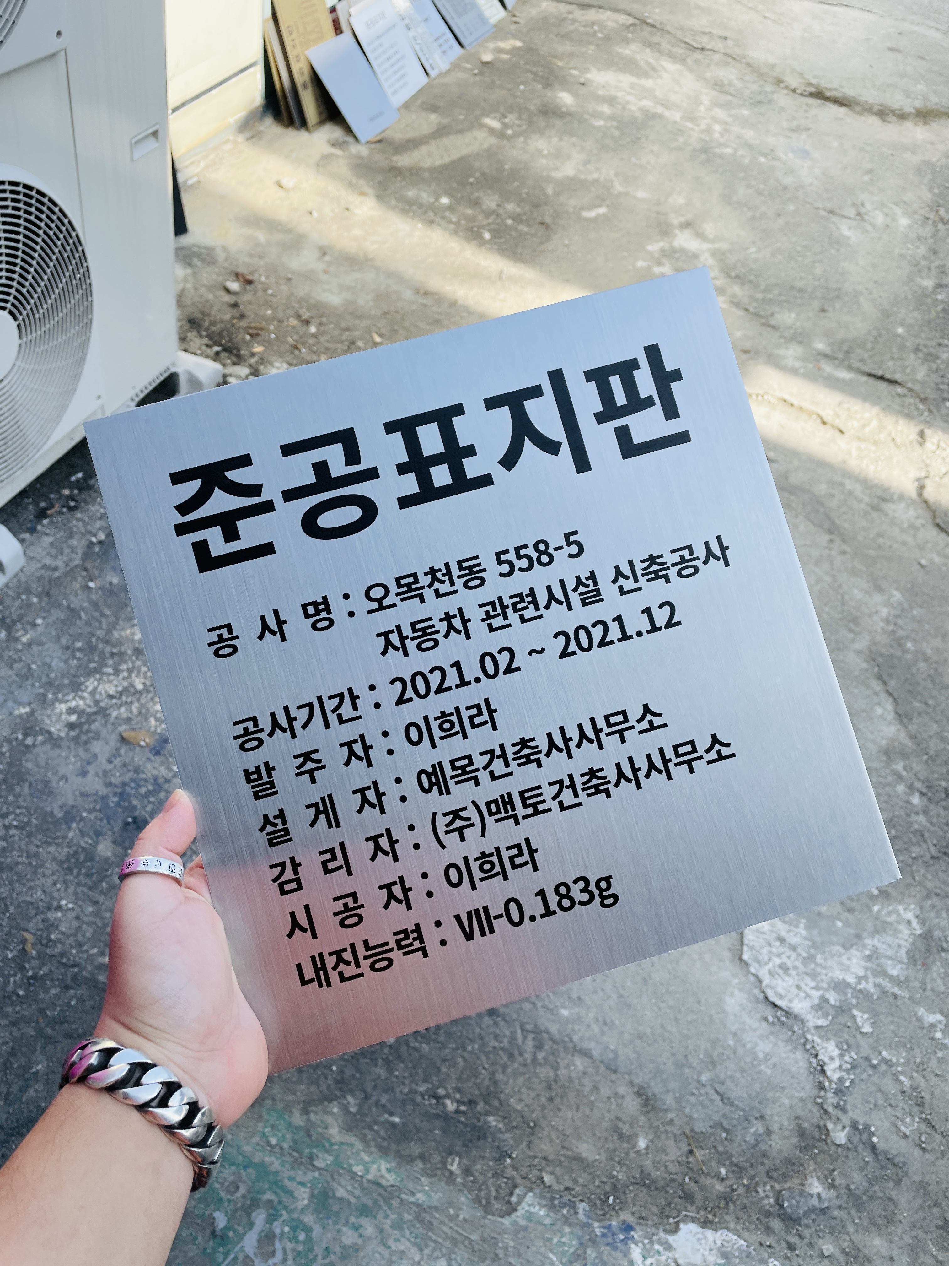 [스텐헤어라인] 준공표지판 머릿돌 건설허가 신축 빌라 공사명